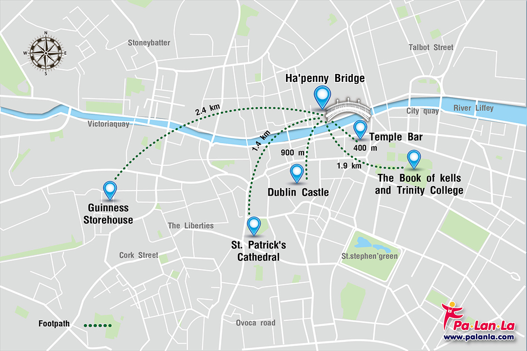 แผนที่ 6 สถานที่ท่องเที่ยวยอดนิยมในเมืองดับบลิน