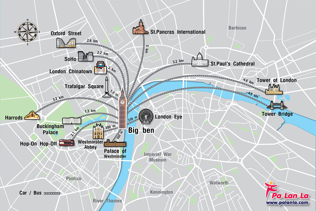 แผนที่ 15 สถานที่เที่ยวยอดนิยมในกรุงลอนดอน