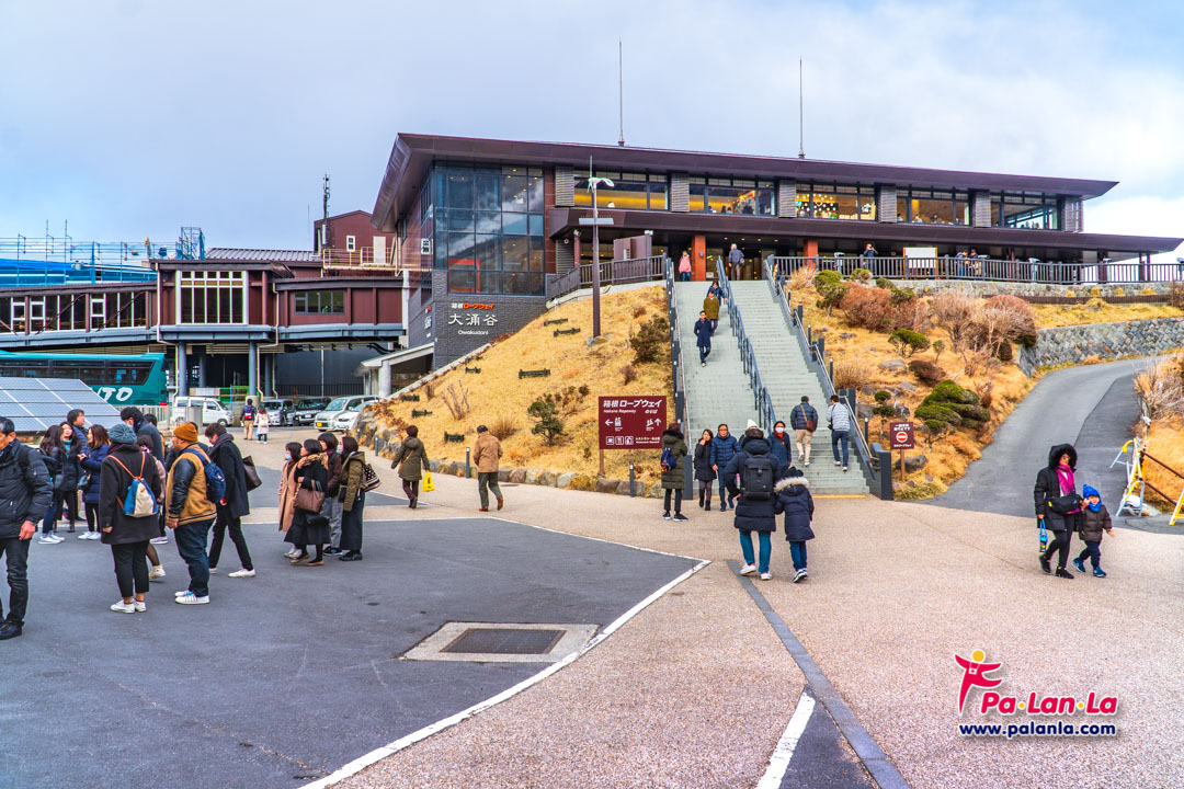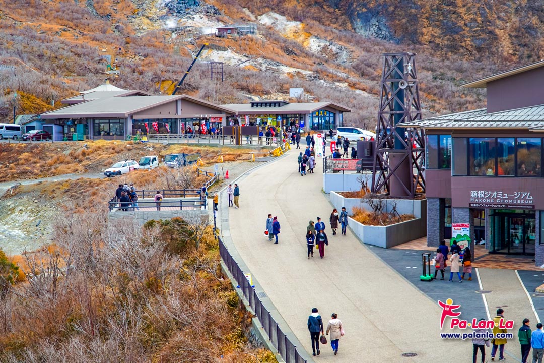 บรรยากาศโดยรอบบริเวณฮาโกเน่โรปเวย์ อาคารขวามือคือพิพิธภัณฑ์ภูมิศาสตร์ฮาโกเน่
