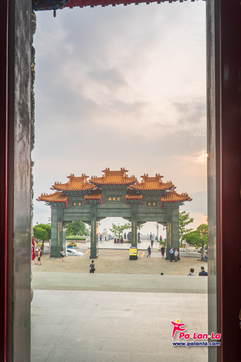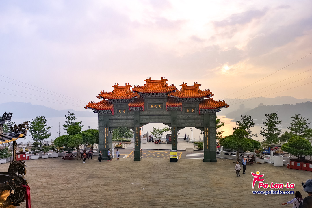 บริเวณซุ้มประตูทางเข้าเป็นจุดหนึ่งที่จะสามารถชมทัศนียภาพรอบๆ ทะเลสาบสุริยันจันทราได้เป็นอย่างดี