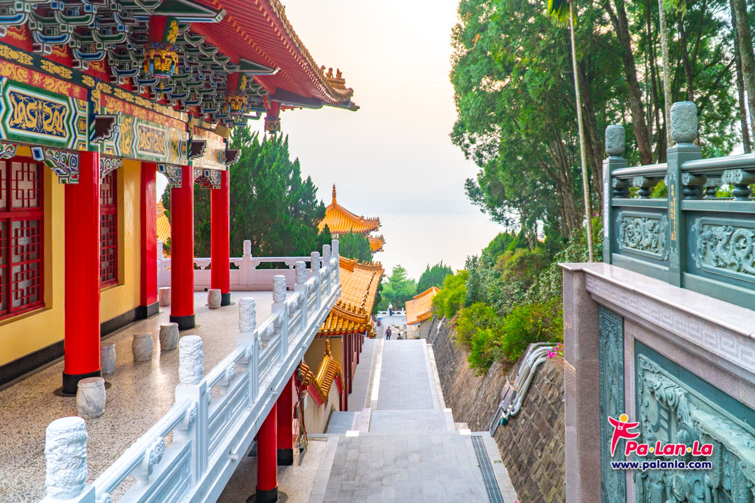 บันไดขึ้นลงจำนวนหลายขั้น จากตรงนี้สามารถมองเห็นวิวของทะเลสาบสุริยันจันทราได้สวยงามเช่นกัน