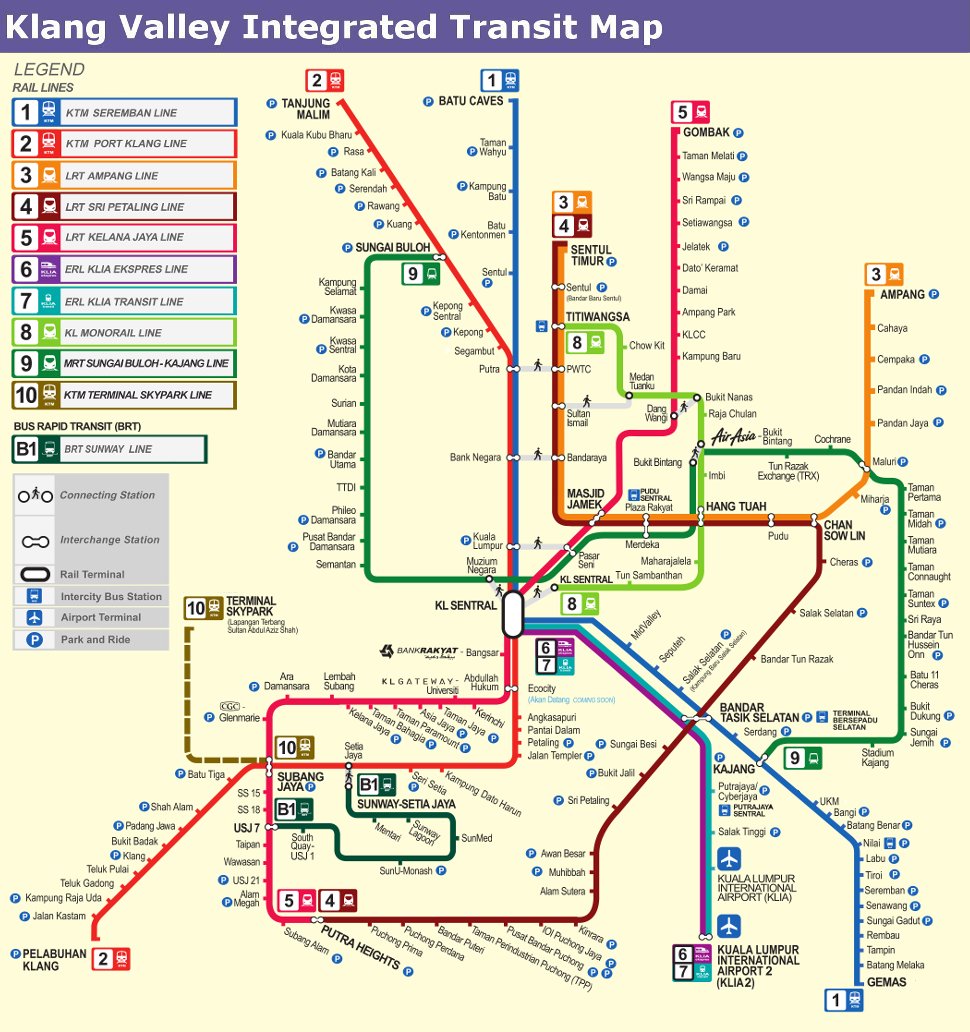 แผนที่ขนส่งสาธารณะในกัวลาลัมเปอร์