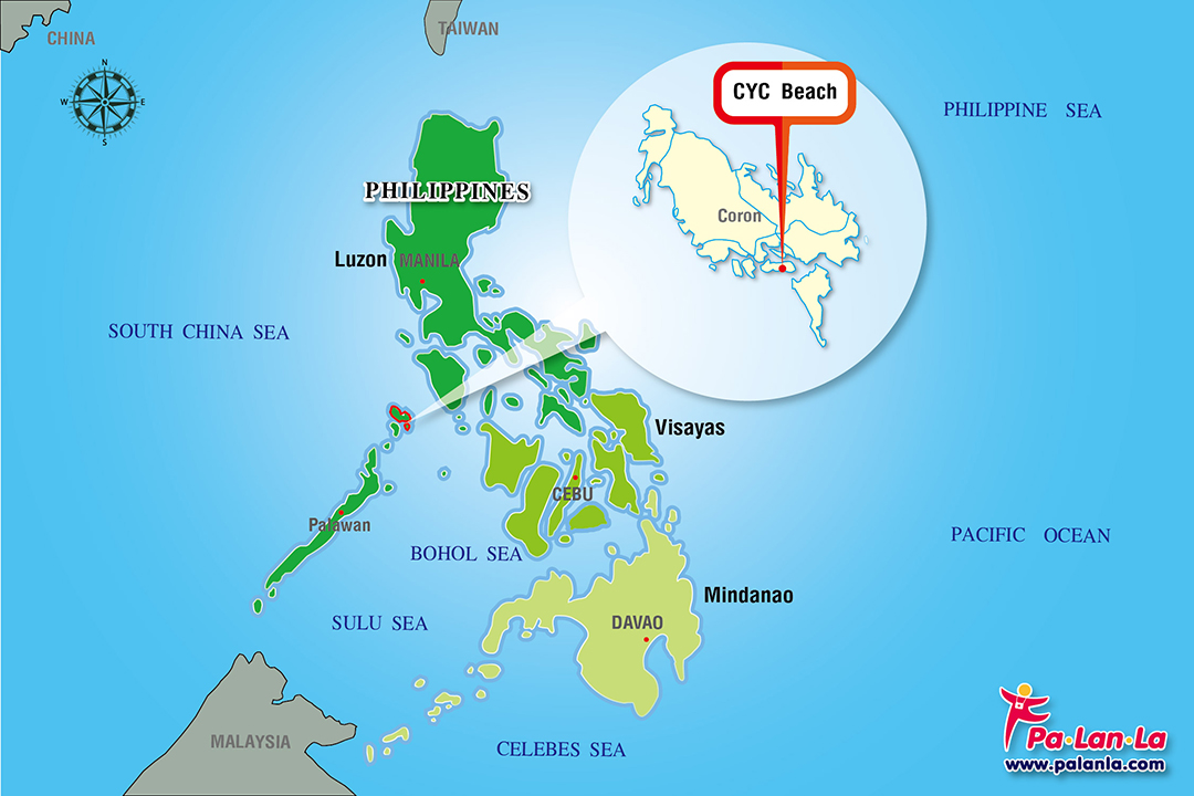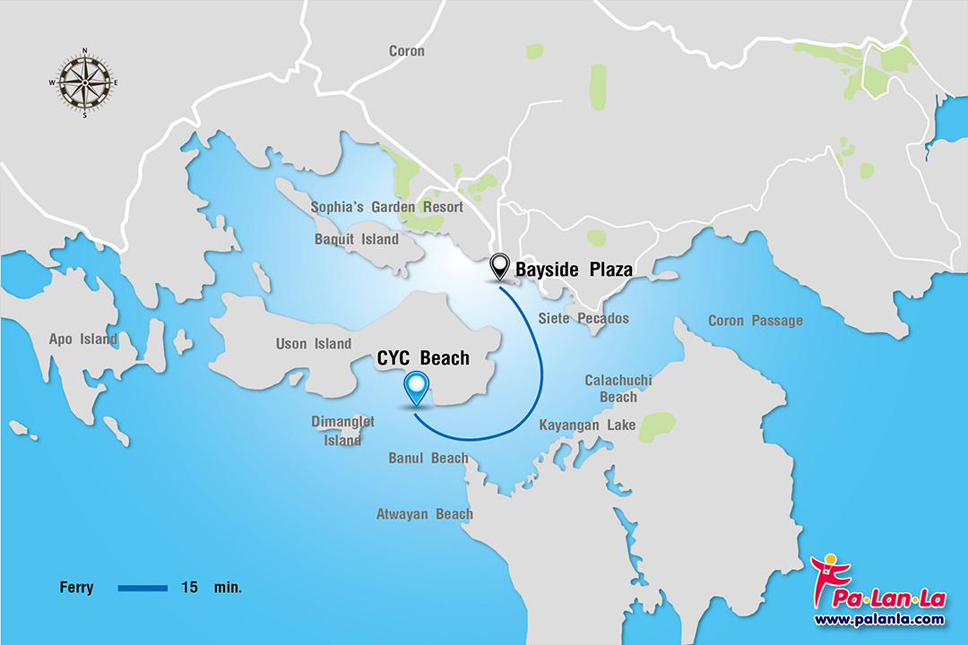 แผนที่ตั้ง CYC Beach บนเกาะโครอน หมูเกาะปาลาวัน ประเทศฟิลิปปินส์