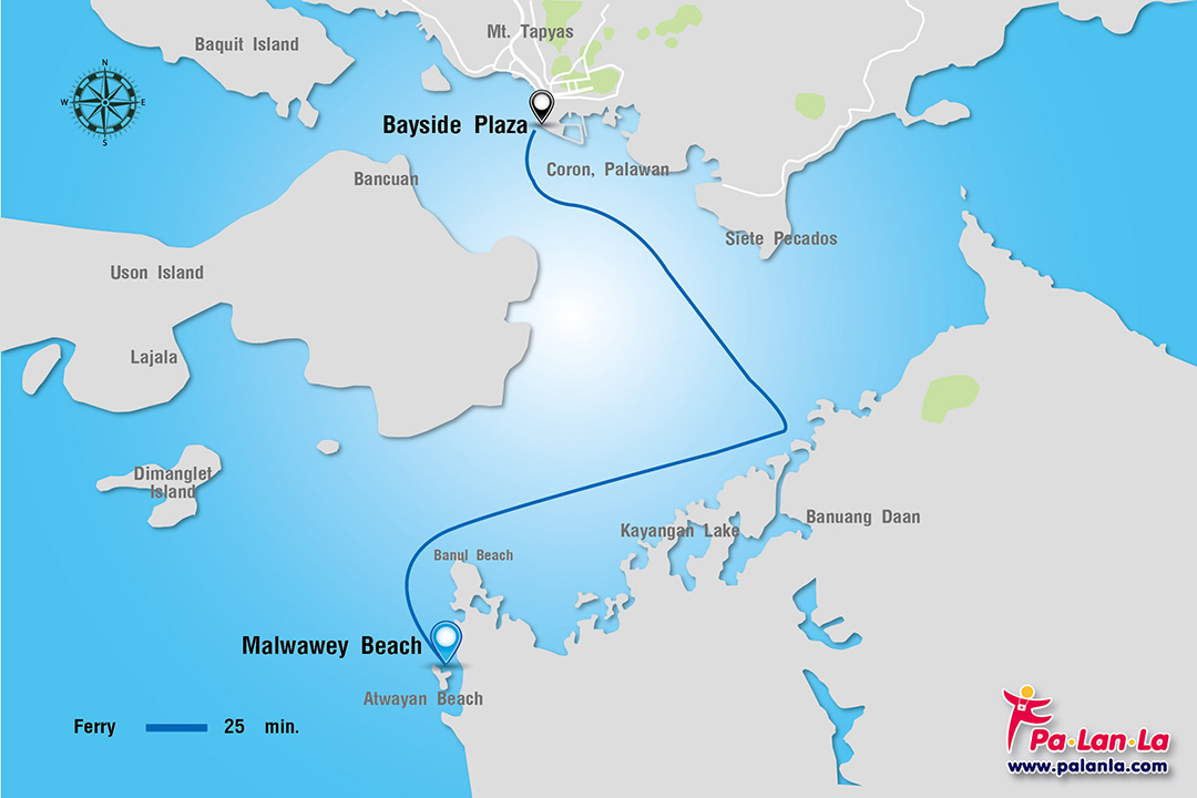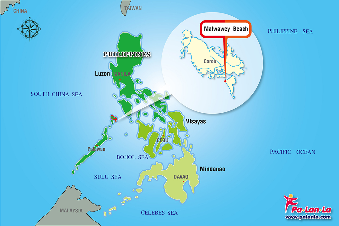 แผนที่ตั้ง Malwawey Beach ที่เกาะโครอน หมู่เกาะปาลาวัน ประเทศฟิลิปปินส์