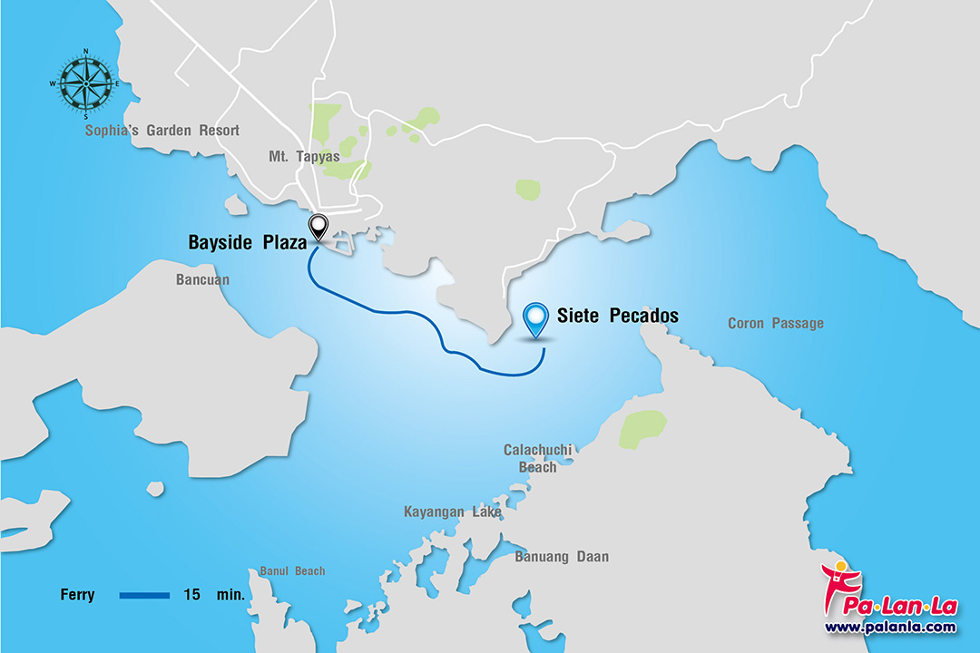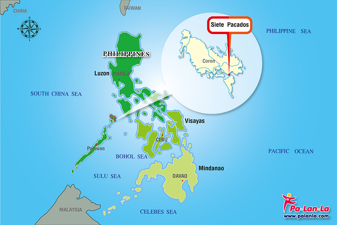 แผนที่ตั้ง Siete Pacados เกาะโครอน หมู่เกาะปาลาวัน ประเทศฟิลิปปินส์