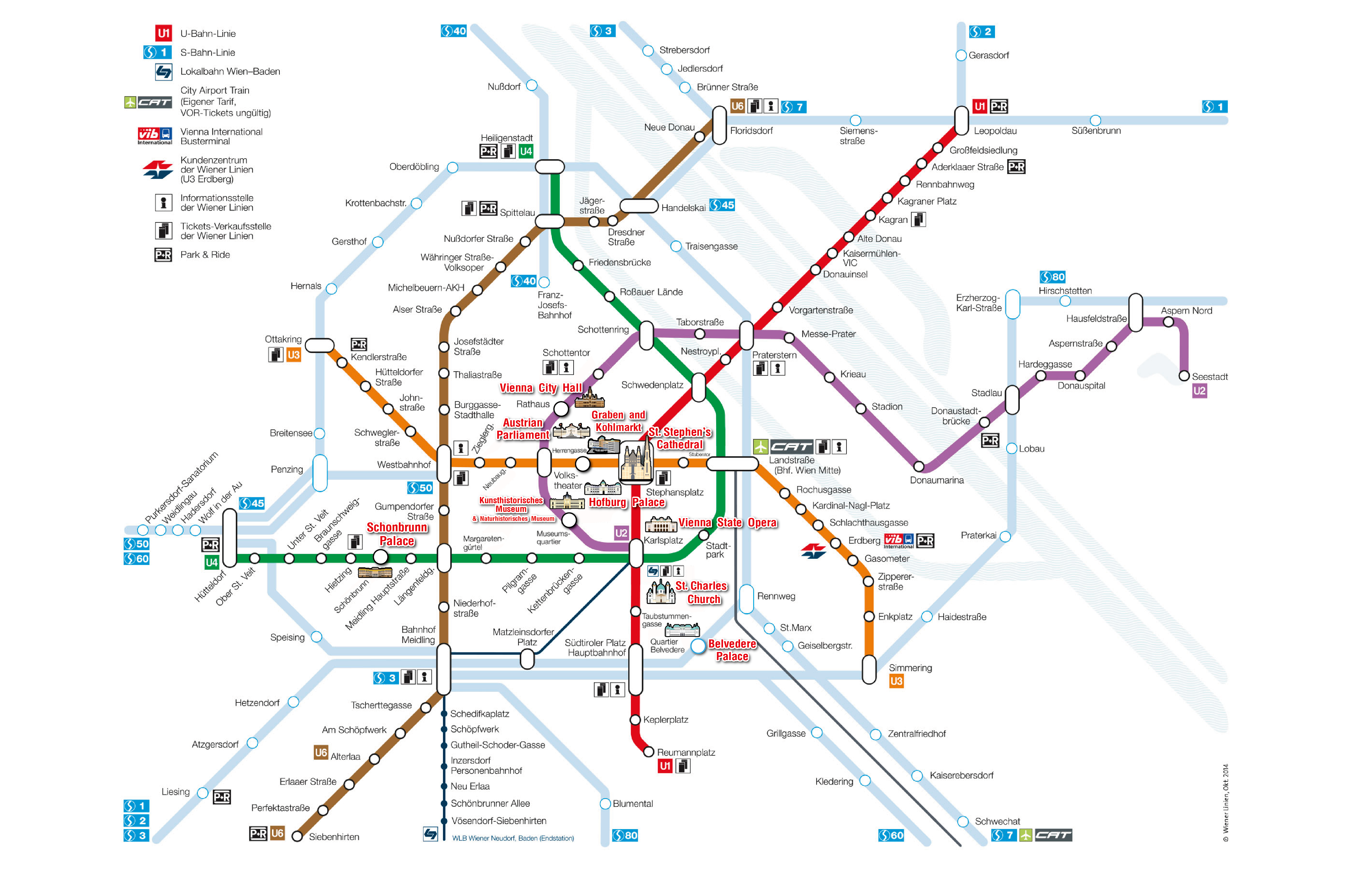 แผนที่ระบบขนส่งมวลชนเมืองเวียนนา ภาพจาก https://www.wienerlinien.at