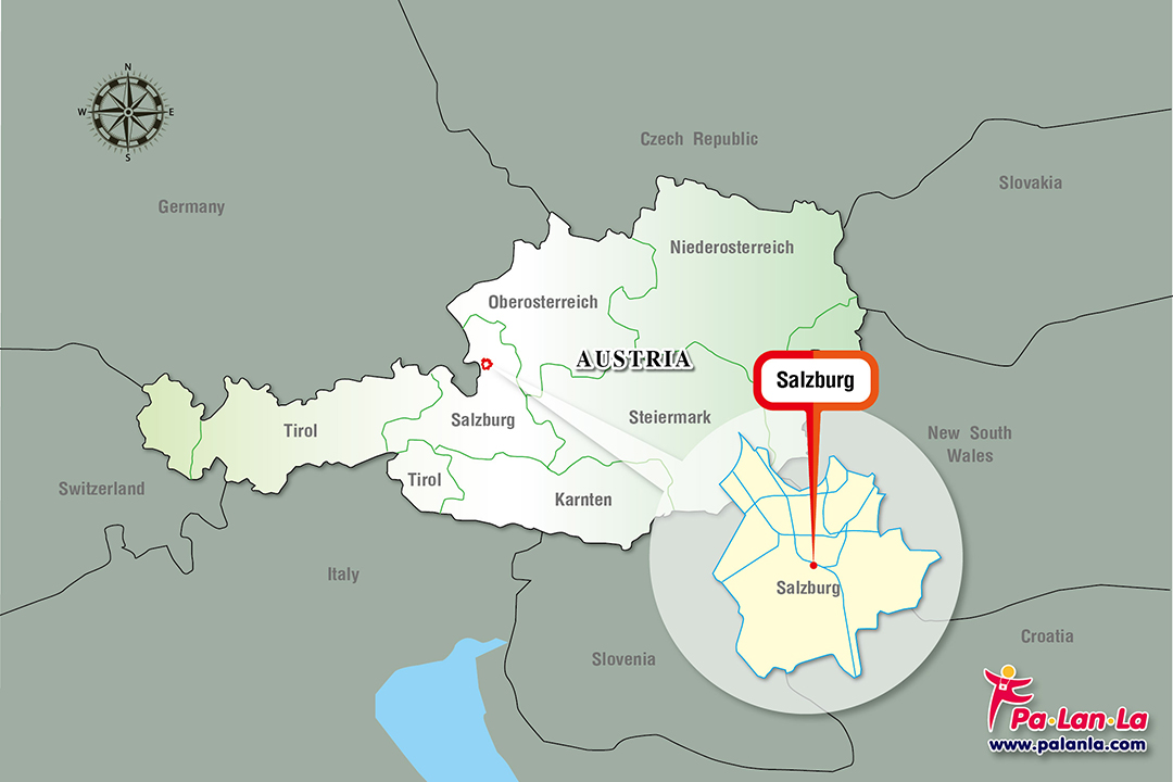 เมืองซาลซ์บูร์ก (Salzburg) เมืองเล็กๆ ในอ้อมกอดของภูเขาที่ตั้งอยู่บนเทือกเขาแอลป์อันงดงามแห่งนี้คือบ้านเกิดของคีตกวีเอกของโลก วูฟกังก์ อมาเดอุส โมสาร์ท (Wolfgang Amadeus Mozart) และเป็นฉากของภาพยนตร์เพลง มนต์รักเพลงสวรรค์ (The Sound of Music) ภาพยนตร์คลาสสิคตลอดกาลอันเป็นที่รู้จักของผู้คนทั่วโลก