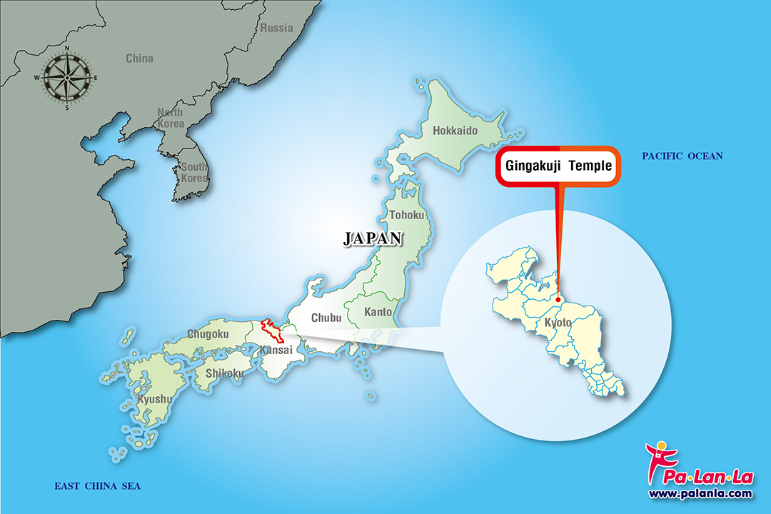 แผนที่ตั้งวัด Gingakuji Temple จังหวัดเกียวโต ประเทศญี่ปุ่น