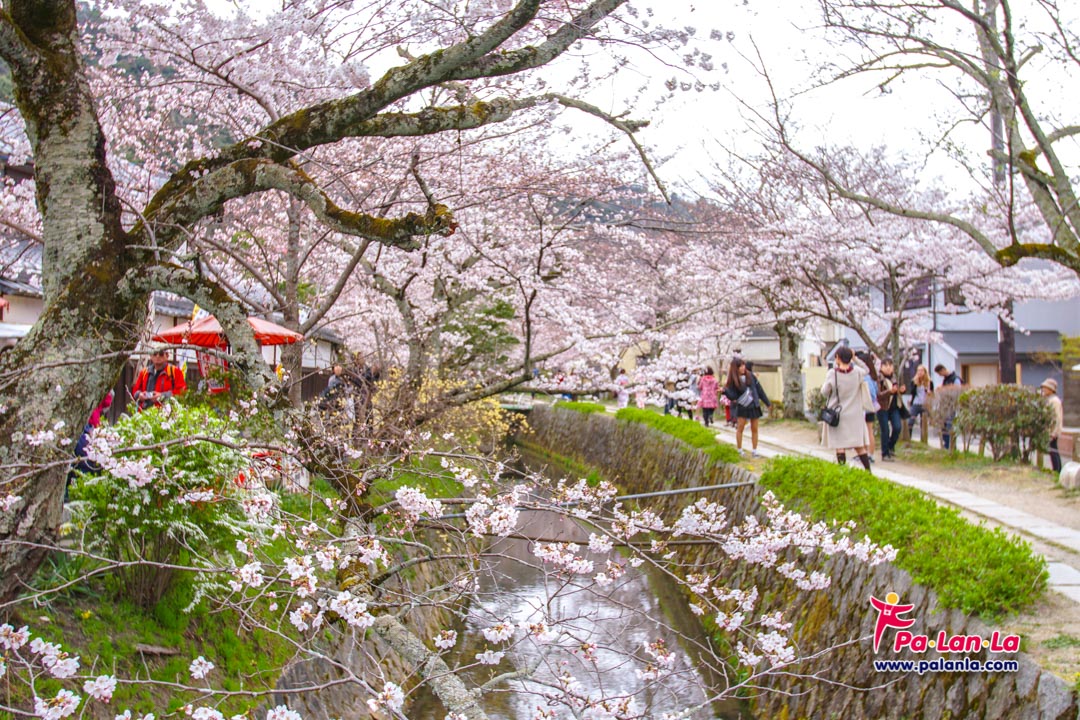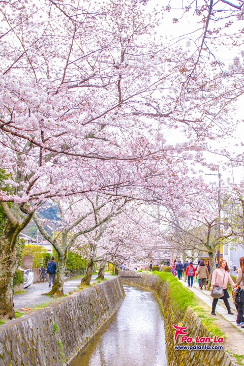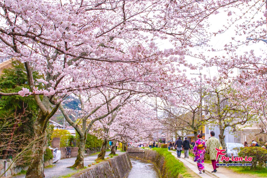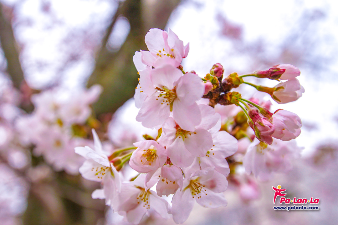 สองข้างทางเต็มไปด้วยสีชมพูจากดอกซากุระที่กำลังผลิบาน