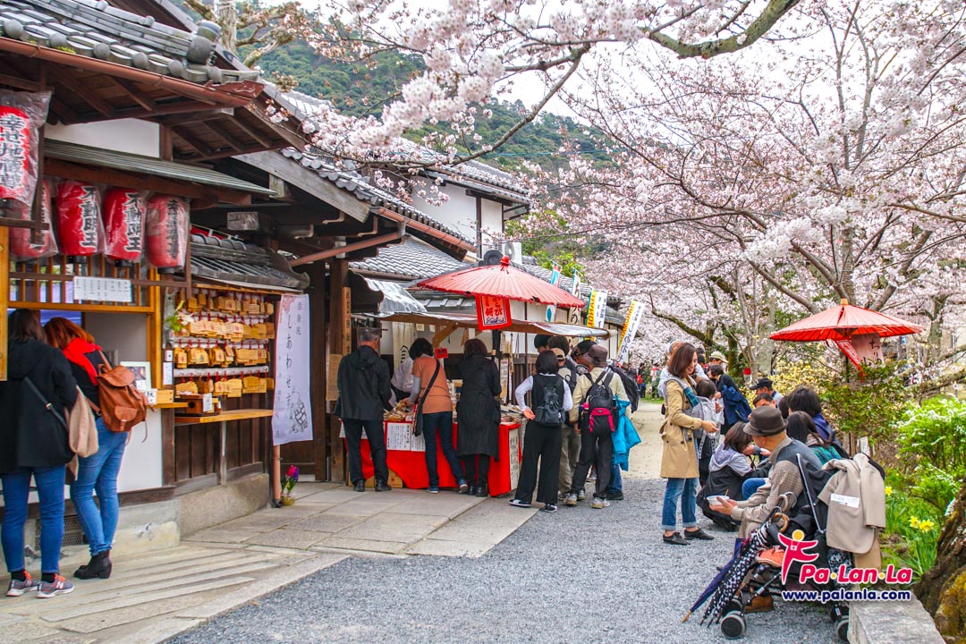 ทางเดินด้านหน้าวัดที่เต็มไปด้วยต้นซากุระทั้งสองข้างทาง