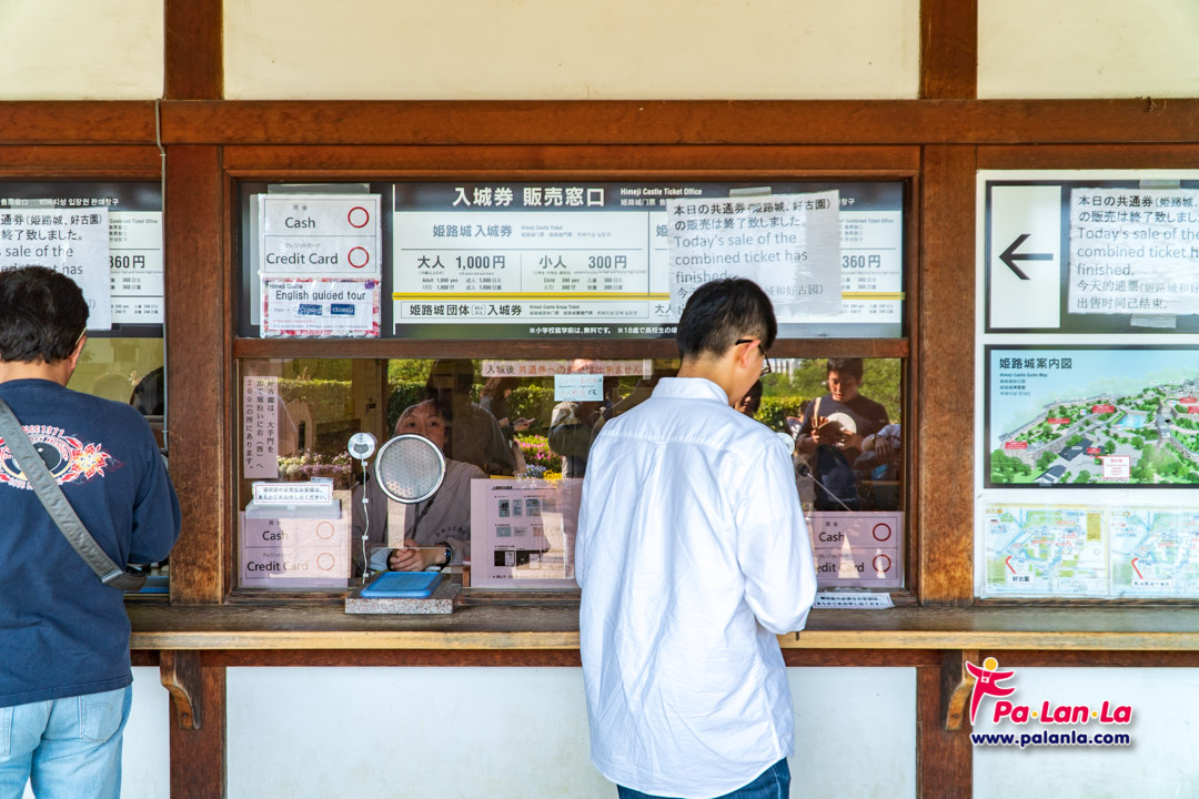 นักท่องเที่ยวกำลังต่อแถวเพื่อซื้อบัตรเข้าชมปราสาทฮิเมจิ (Himeji Castle)