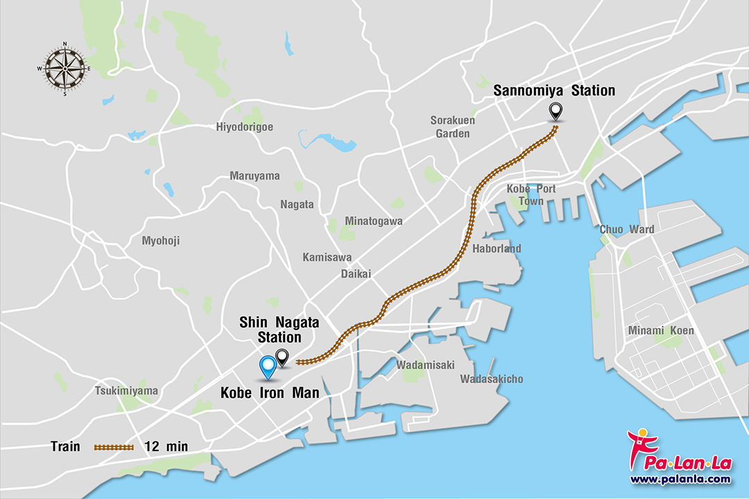 - รถไฟ จากสถานี Sannomiya Station ให้ขึ้นรถไฟสาย Hankyu Kobe Line ไปลงที่สถานี Shin-Nagata Station และเดินต่อไปประมาณ 250 เมตร ก็จะถึงโกเบ ไอรอนแมน