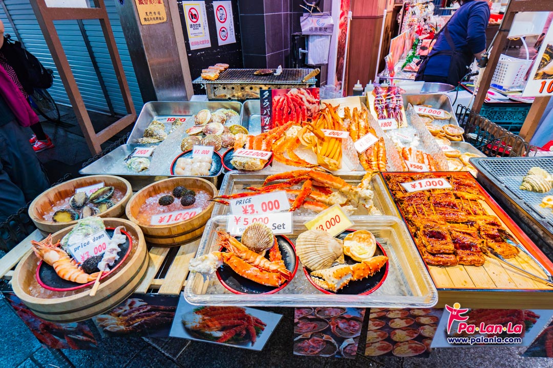 เวลาเปิด-ปิด : ช่วงเวลาที่คึกคักที่สุดของตลาดคุโรมง (Kuromon Ichiba Market) จะเป็นตอน 09:30 น. – 18:00 น.