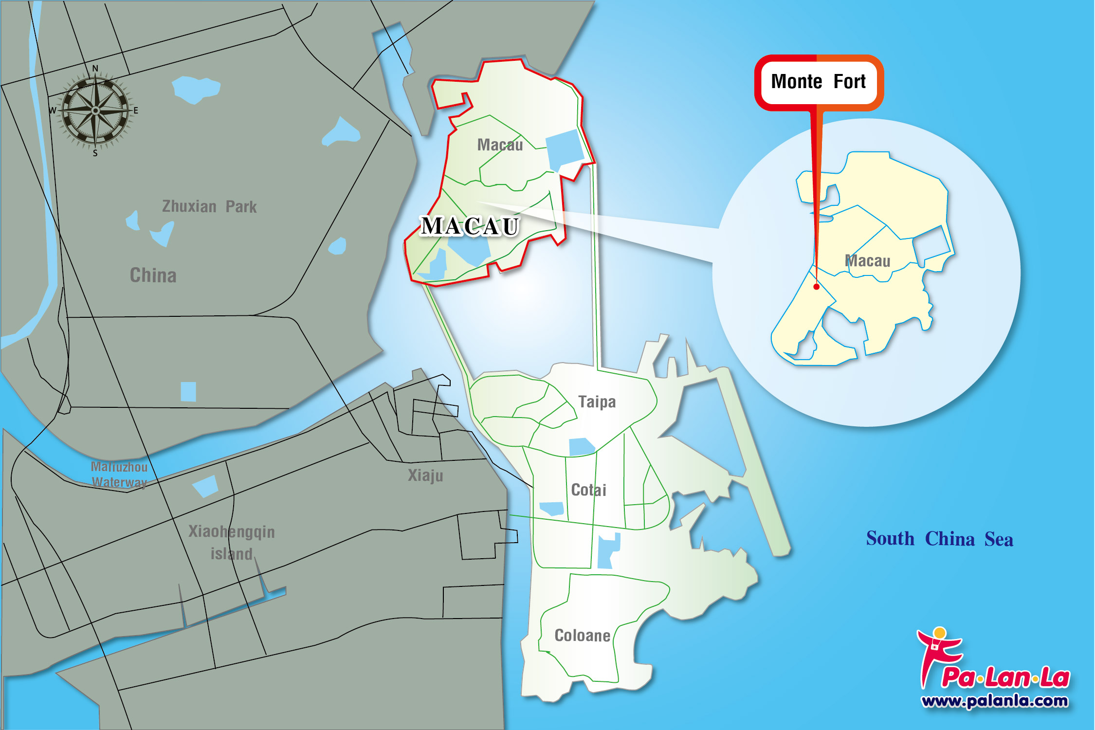 แผนที่ตั้งป้อมปราการมองเต เขตแซ มาเก๊า
