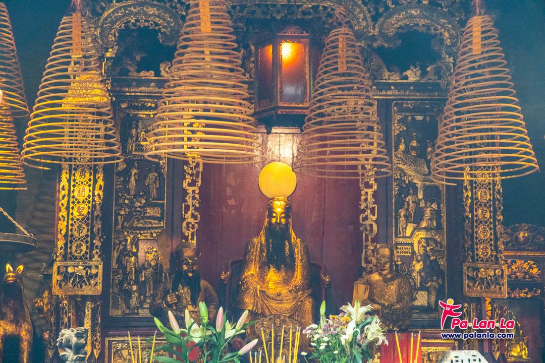 เทพเจ้ากวนอูตั้งอยู่องค์กลางของตัววัด