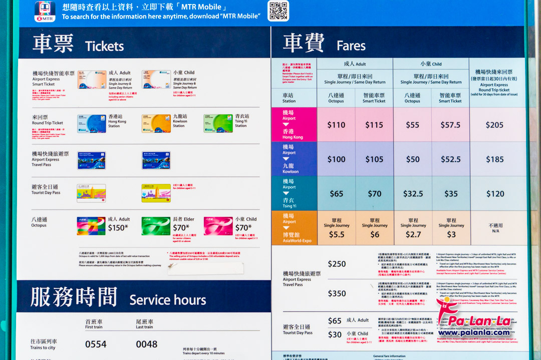 - แบบ 1 วัน ราคา 100 HKD (นับเวลาแบบ 24 ชั่วโมง) โดยเริ่มนับจากเวลาที่เริ่มใช้งานจนถึงรถไฟเที่ยวสุดท้ายของวันรุ่งขึ้น