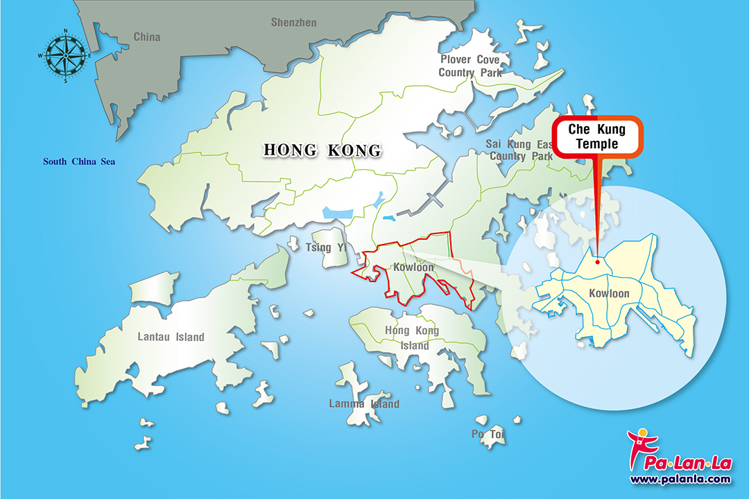 แผนที่วัดแชกง เขตไท เหว่ย เกาะเกาลูน ฮ่องกง