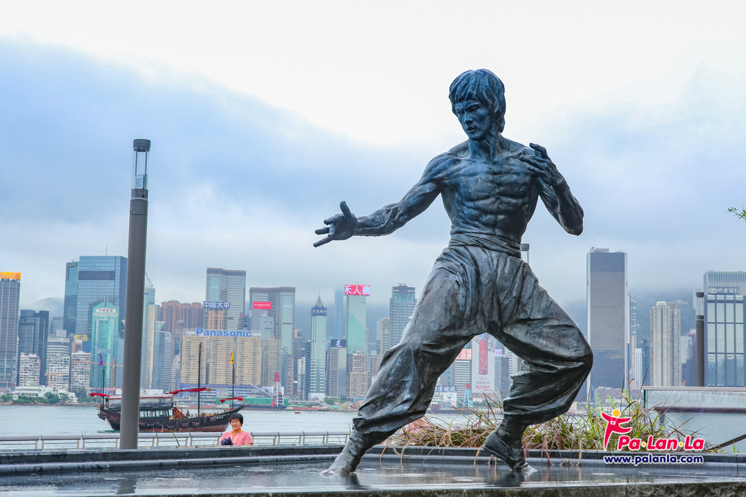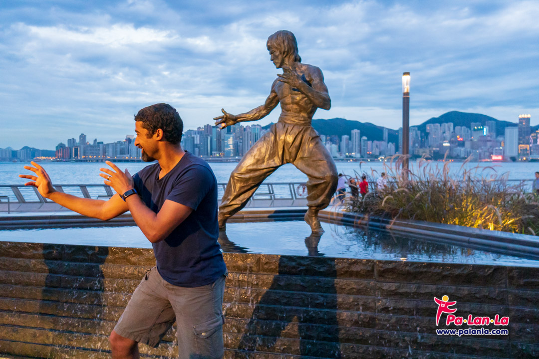 นักท่องเที่ยวถ่ายภาพกับรูปปั้นบรูซ ลี อย่างสนุกสนาน