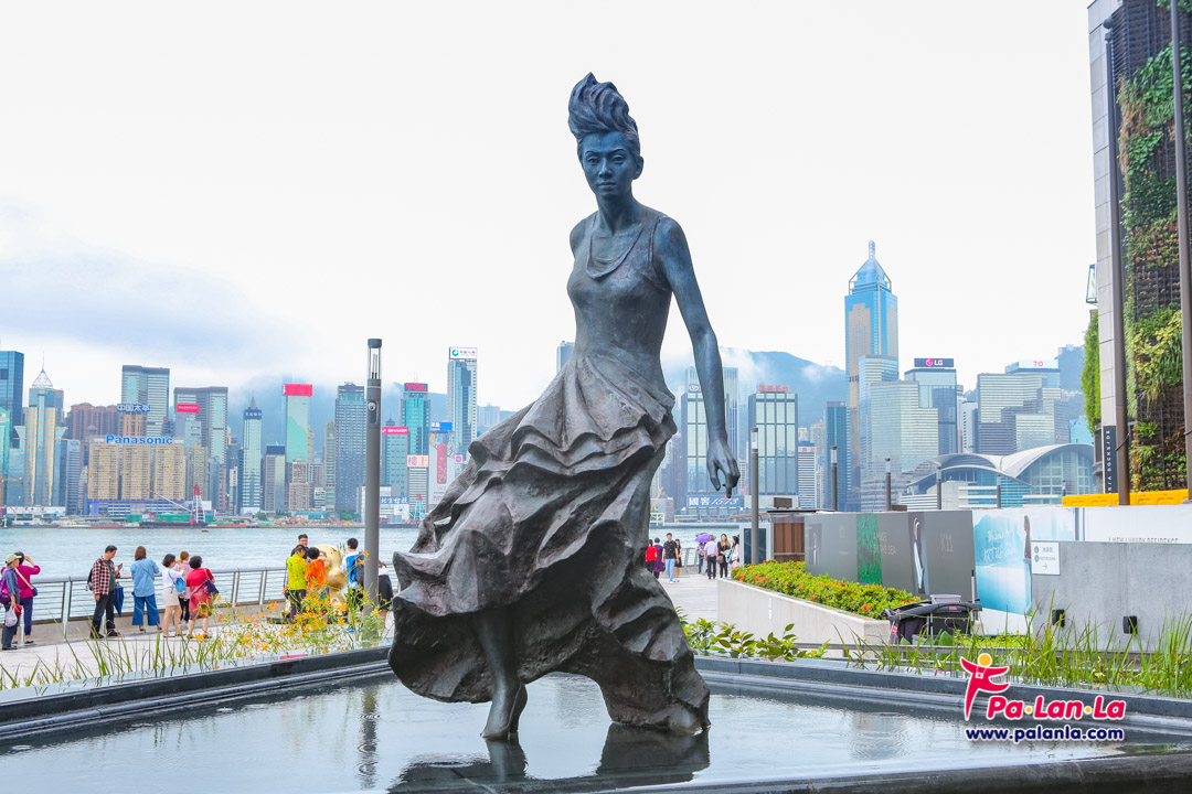 นักท่องเที่ยวถ่ายภาพกับรูปปั้น Goddess of Hong Kong Film Awards
