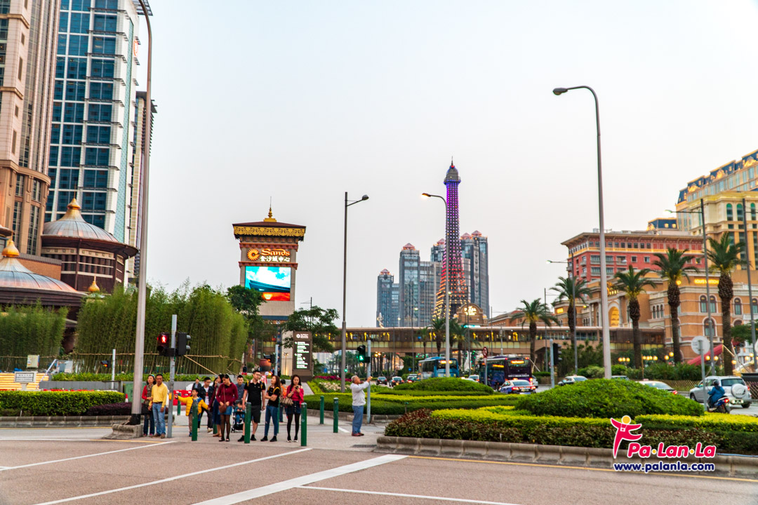 ถนนสายคาสิโนบริเวณหอไอเฟลมาเก๊าที่ตัดผ่านคาสิโนใหญ่ๆ ของเขตโคไทที่นักท่องเที่ยวนิยมมาเดิน