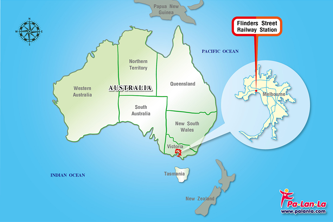 - สถานีรถไฟฟลินเดอร์ส สตรีท เมืองเมลเบิร์น ประเทศออสเตรเลีย