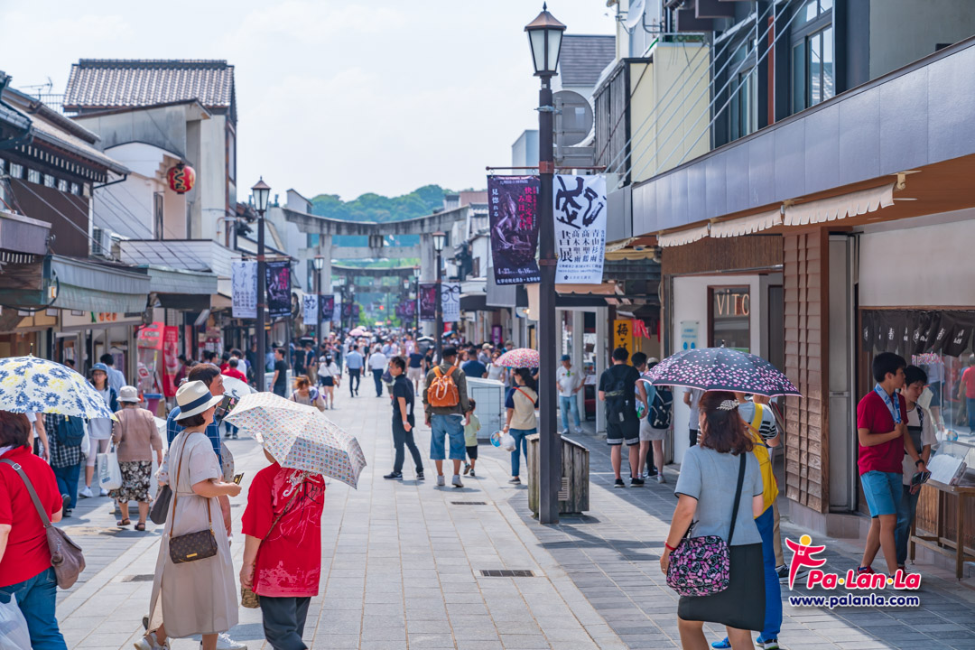 ถนนคนเดินซันโดที่ทอดยาวไปยังทางเข้าศาลเจ้าดาไซฟุเท็มมังกู