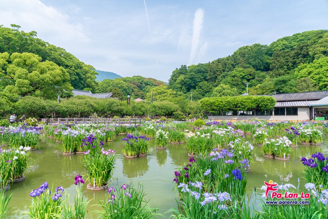 บึงน้ำที่เต็มไปด้วยกอดอกไม้สวยๆ ในศาลเจ้าดาไซฟุเท็มมังกู
