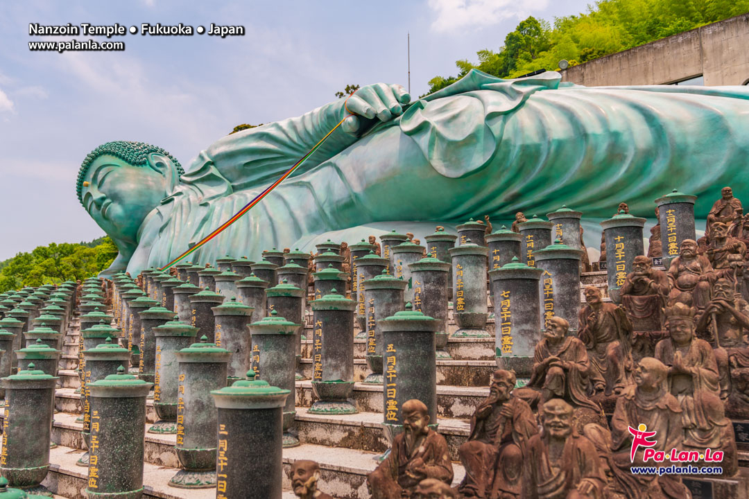 วัดนันโซอิน (Nanzoin Temple) วัดขนาดใหญ่ที่แทรกตัวอยู่กลางธรรมชาติซึ่งเต็มไปด้วยต้นไม้ และภูเขาโอบล้อม โดยภายในวัดยังเป็นที่ประดิษฐานพระพุทธรูปปางไสยาสน์ ทำจากทองแดงสำริด ที่ขึ้นชื่อว่ามีขนาดใหญ่ที่สุดในโลก รวมถึงบริเวณรอบๆ ยังมีประติมากรรมทางศาสนา และสถาปัตยกรรมน่าสนใจ กระจายตัวอยู่ทั่วพื้นที่ของวัด ที่กว้างขวาง และเปี่ยมไปด้วยเสน่ห์ของความเก่าแก่ นอกจากนั้นวัดนี้ ยังเป็นศูนย์กลางของพิธีแสวงบุญซาซากุริ (Sasaguri Pilgrimage) ที่ผู้มีศรัทธานิยมมาเริ่มต้นเส้นทางกันที่นี่ ทำให้แม้จะเป็นวัดที่ตั้งอยู่ห่างออกมาจากตัวเมือง แต่ก็เต็มไปด้วยประวัติศาสตร์ และความสวยงามที่ควรค่าแก่การมาเที่ยวชมเช่นกัน