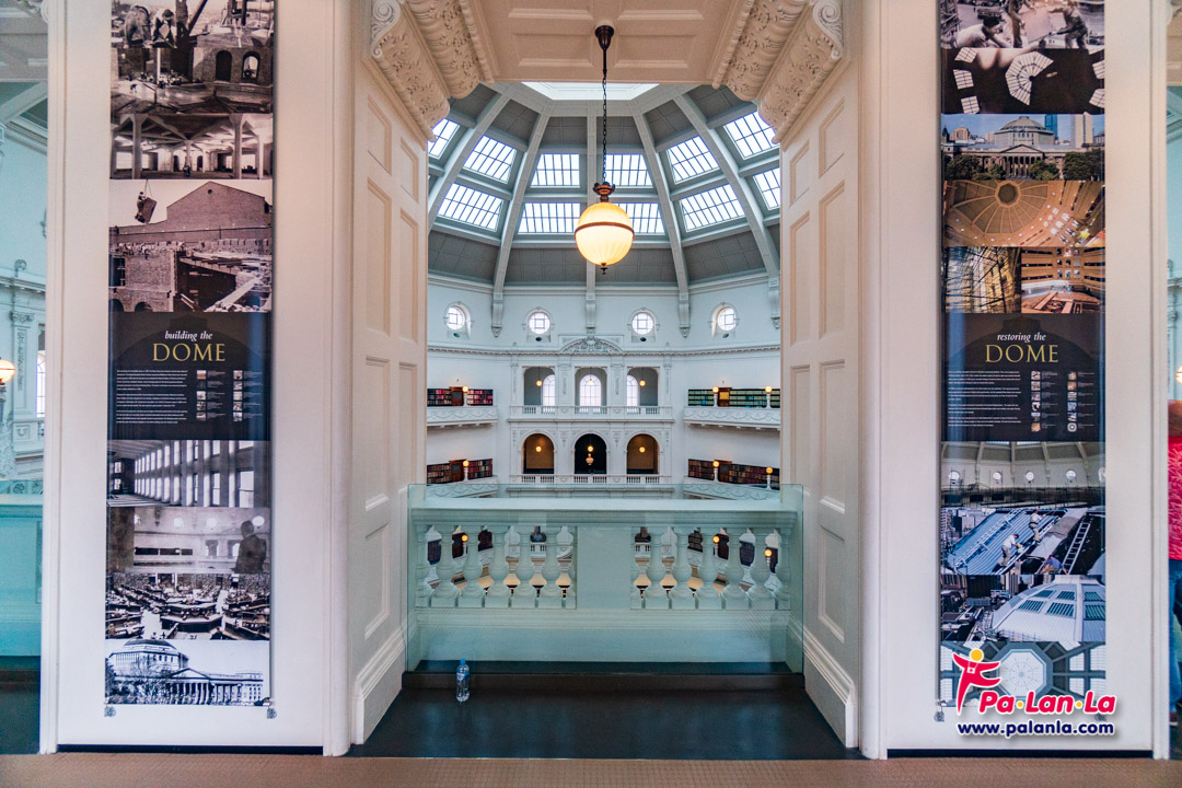 โดมสีขาวอันงดงามของห้องอ่านหนังสือ La Trobe มีเส้นผ่าศูนย์กลางและความสูง 34.75 เมตร