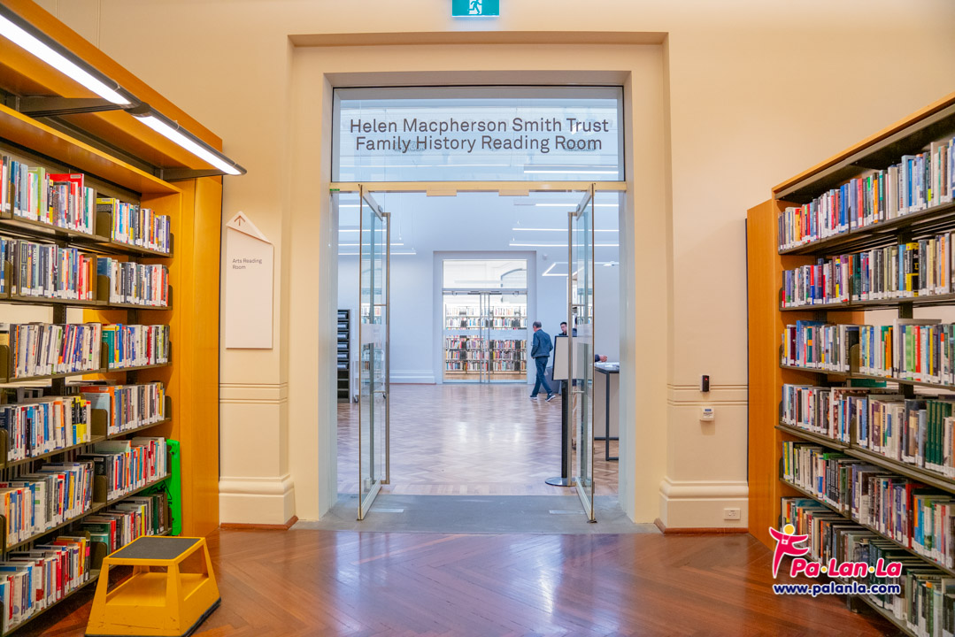บริเวณชั้นล่างสุดของห้องอ่านหนังสือ La Trobe