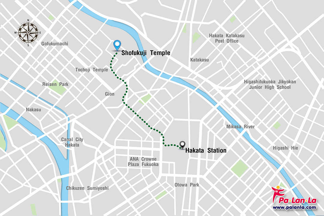 - รถไฟ จาก Hakata Station สามารถเดินไปยัง วัดโชฟูคูจิ ได้เลย ระยะทางประมาณ 800 เมตร ใช้เวลาเดินประมาณ 10 นาที