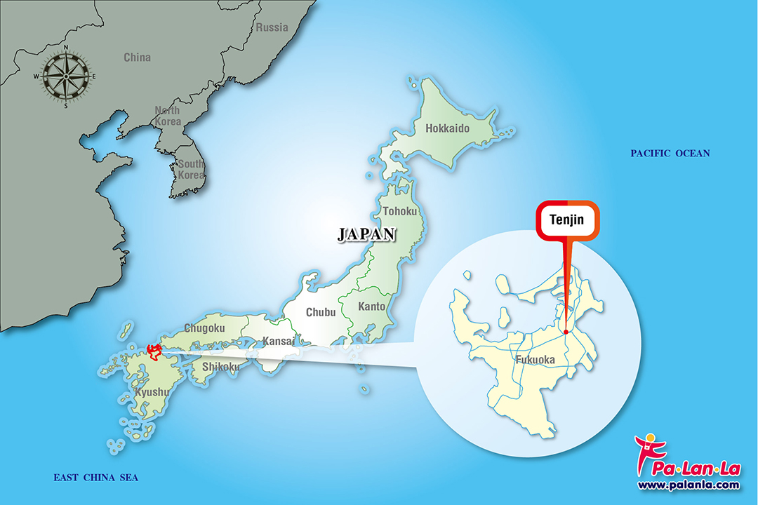 แผนที่ตั้ง ย่านเทนจิน จังหวัดฟุกุโอกะ ประเทศญี่ปุ่น
