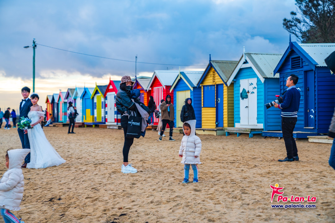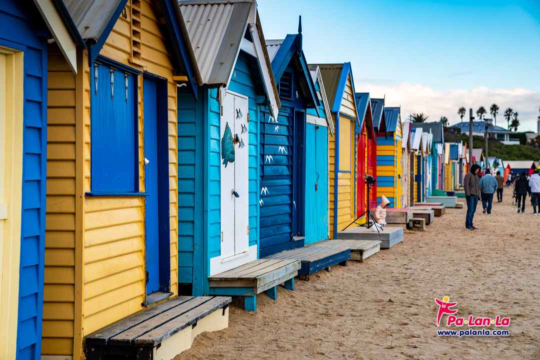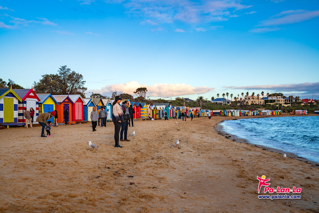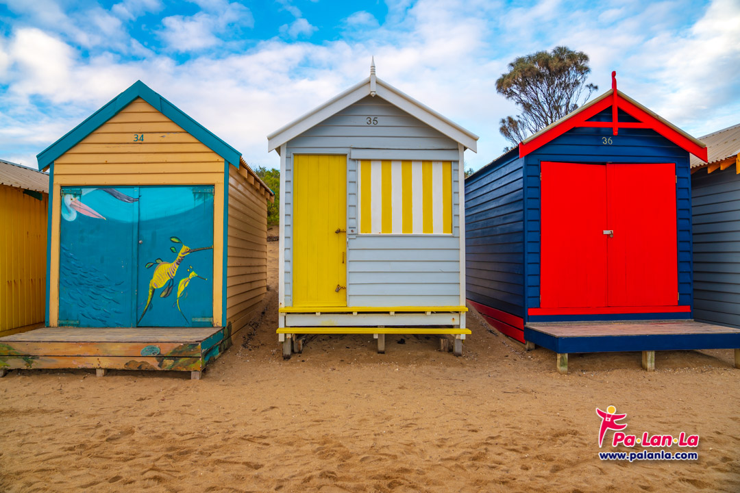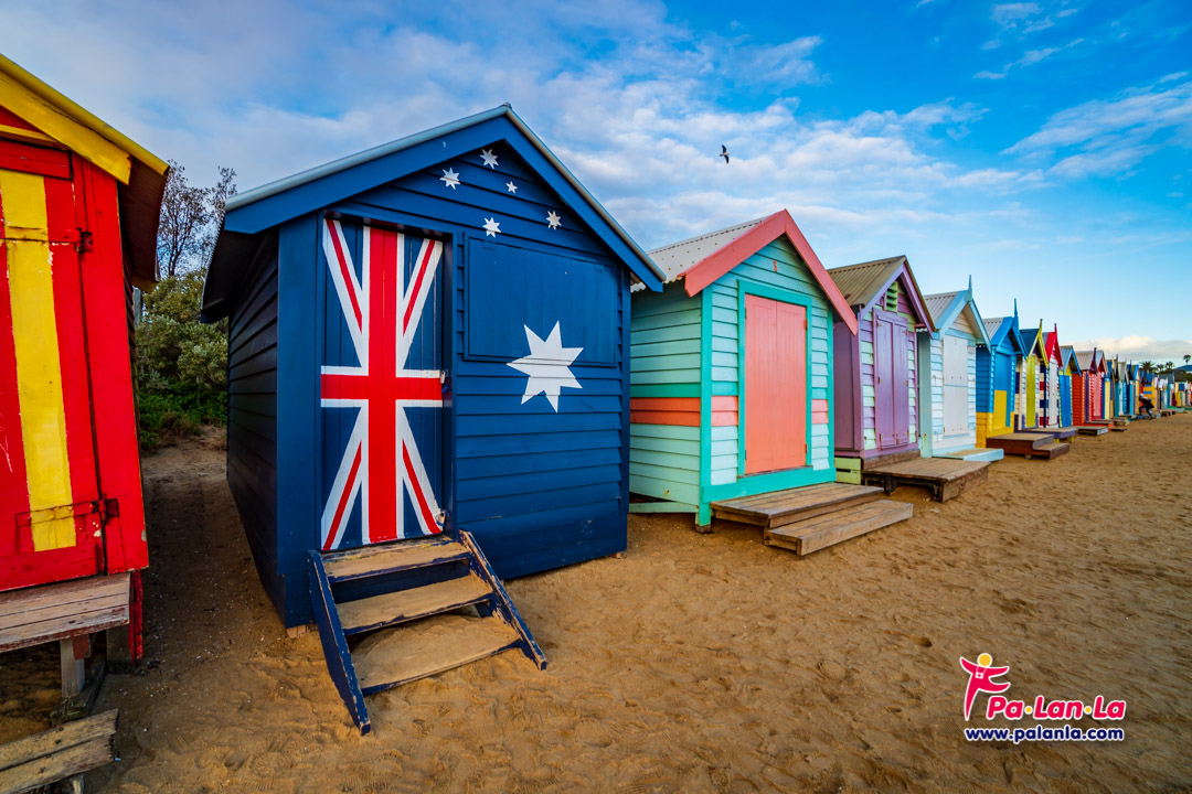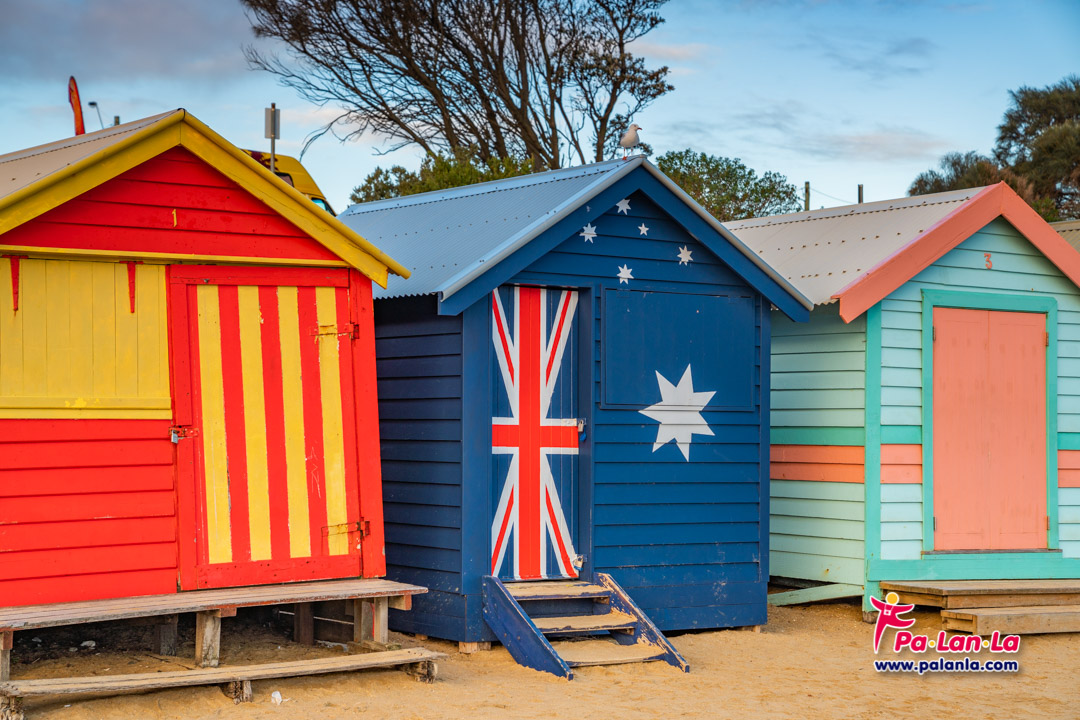 Bathing Box ตรงกลางที่มีลวดลายเป็นธงชาติออสเตรเลีย คือห้องอาบน้ำหลังที่ได้รับความสนใจเข้าคิวรอถ่ายภาพจากนักท่องเที่ยวมากที่สุด