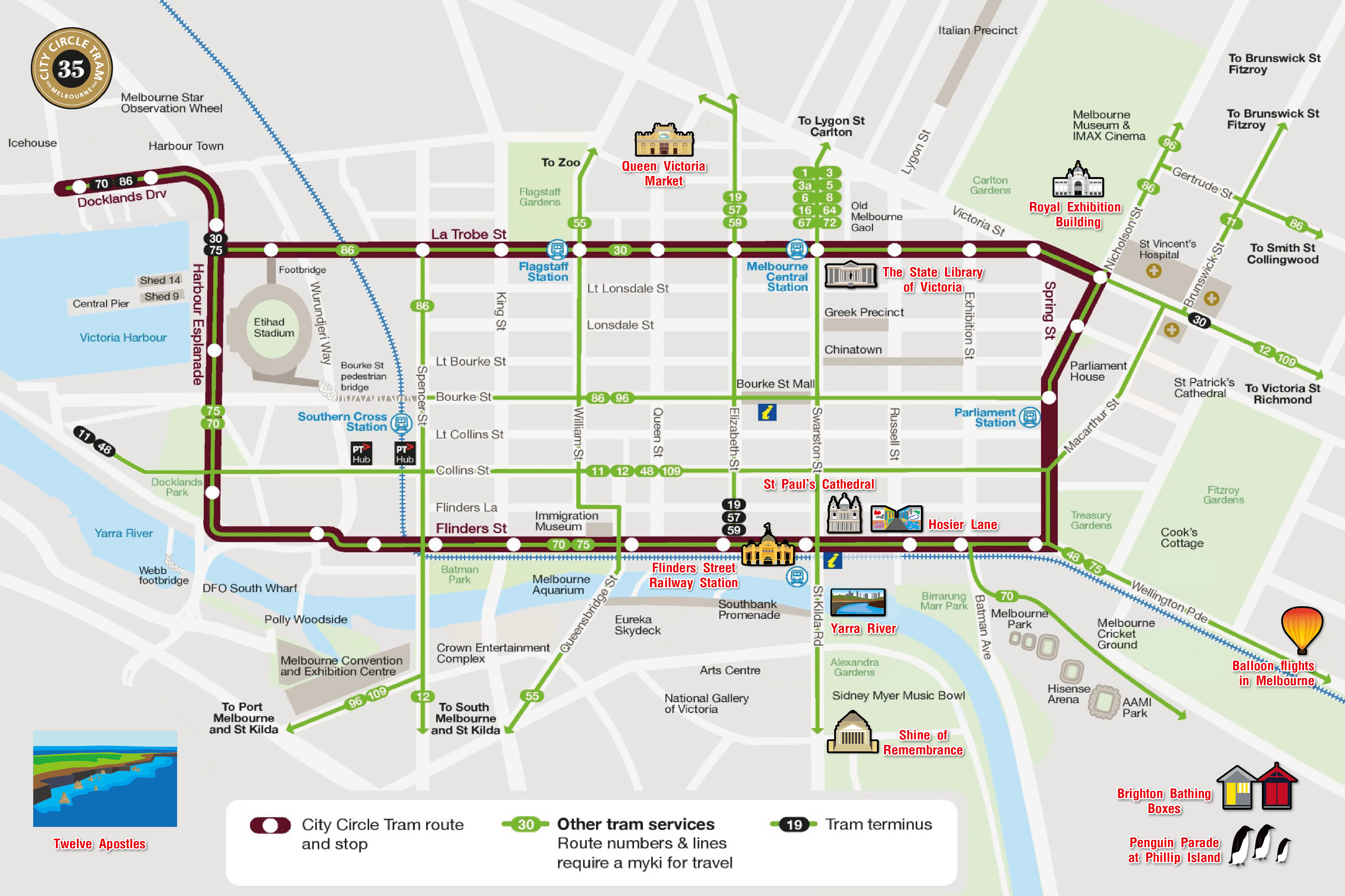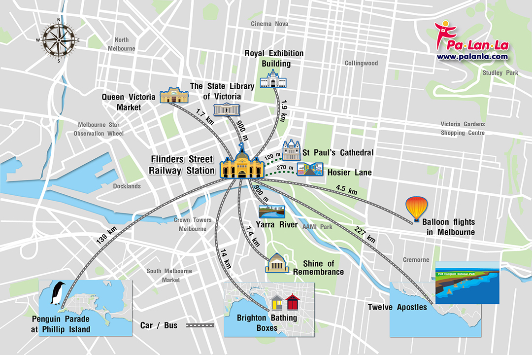 แผนที่ 12 สถานที่ท่องเที่ยวยอดนิยมในเมลเบิร์น