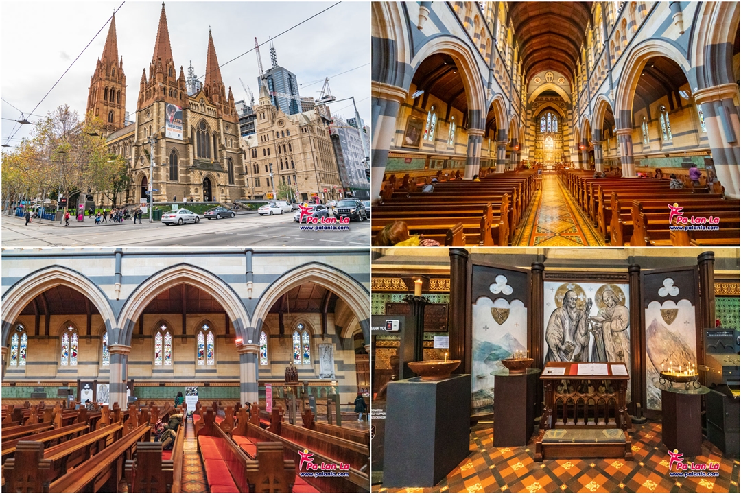 อาสนวิหารเซนต์พอล (St Paul’s Cathedral) เป็นอาสนวิหารอาคารหินทรายขนาดใหญ่ ผู้ออกแบบคือ วิลเลียม บัตเทอร์ฟิลด์ (William Butterfield) สถาปนิกชาวอังกฤษ สร้างขึ้นระหว่างปี ค.ศ. 1880 และ 1931 ด้วยสถาปัตยกรรมในรูปแบบนีโอ โกธิค (Neo - Gothic) ที่มีความงดงามและโดดเด่น โดยมียอดหลังคาแหลมสูงเสียดฟ้า เป็นจุดสังเกตที่มองเห็นได้ง่ายที่สุดแห่งหนึ่งในเมืองเมลเบิร์น ด้านในได้รับการตกแต่งอย่างหรูหรา ด้วยกระเบื้องปูพื้นและฝาผนังลวดลายสวยงาม งานก่อเป็นชั้นๆ กระเบื้องโมเสก และหลังคามุงด้วยไม้อย่างประณีต รวมถึงแท่นบูชาทรงสูงซึ่งสร้างขึ้นจากหินอ่อนและหินอลาบาสเตอร์ (Alabaster) จากเดวอนเชียร์ รวมถึงมีผลงานศิลปะประวัติศาสตร์ให้คริสต์ศาสนิกชนและนักท่องเที่ยวได้ชมและศึกษา อาสนวิหารแห่งนี้จึงเป็นทั้งศูนย์รวมความศรัทธาของชาวคริสต์ในเมลเบิร์น และเป็นอีกหนึ่งแลนด์มาร์กสำคัญใจกลางเมืองที่นักท่องเที่ยวไม่อาจพลาดไปชมความงดงาม