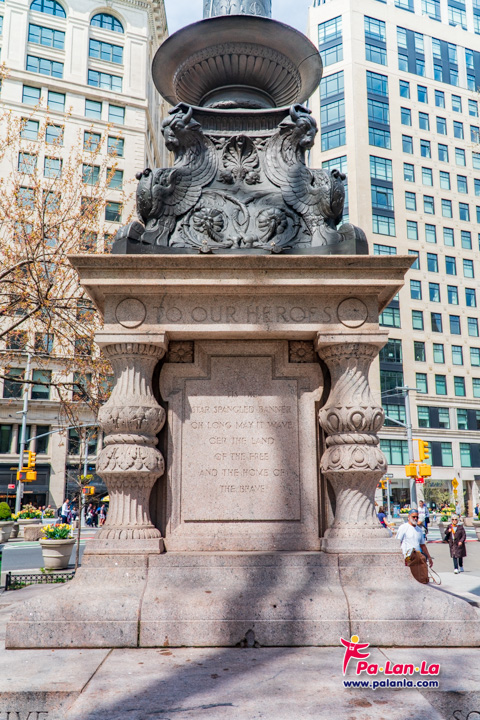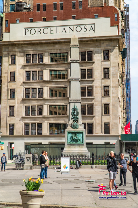 อนุสาวรีย์ General Worth Square ด้านหน้าตึก PORCELANOSA อาคารจัดแสดงสถาปัตยกรรมสมัยใหม่