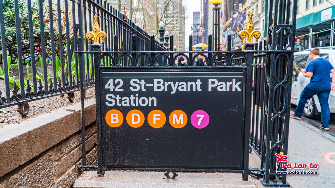 สถานีรถไฟใต้ดิน 42St-Bryant Park Station อยู่ทางทิศตะวันออกของสวนสาธารณะ