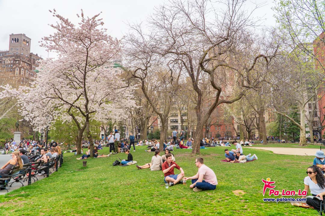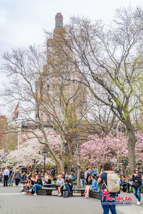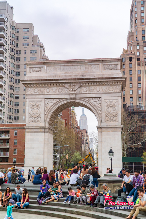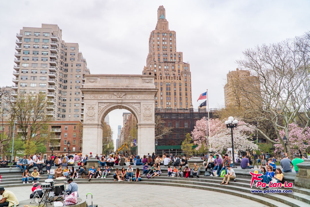 นักท่องเที่ยวนิยมมานั่งบริเวณ Washington Square Arch และลานน้ำพุ