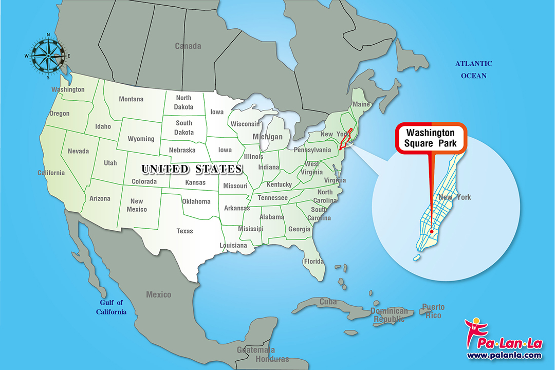 - สวนสาธารณะวอชิงตันสแควร์ เมืองนิวยอร์ก ประเทศสหรัฐอเมริกา