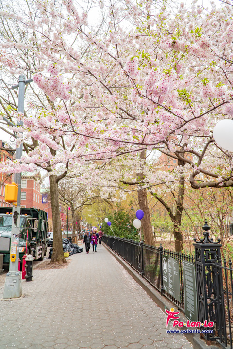 ทางเดินรอบสวนสาธารณะกลายเป็นสีชมพูในฤดูใบไม้ผลิ