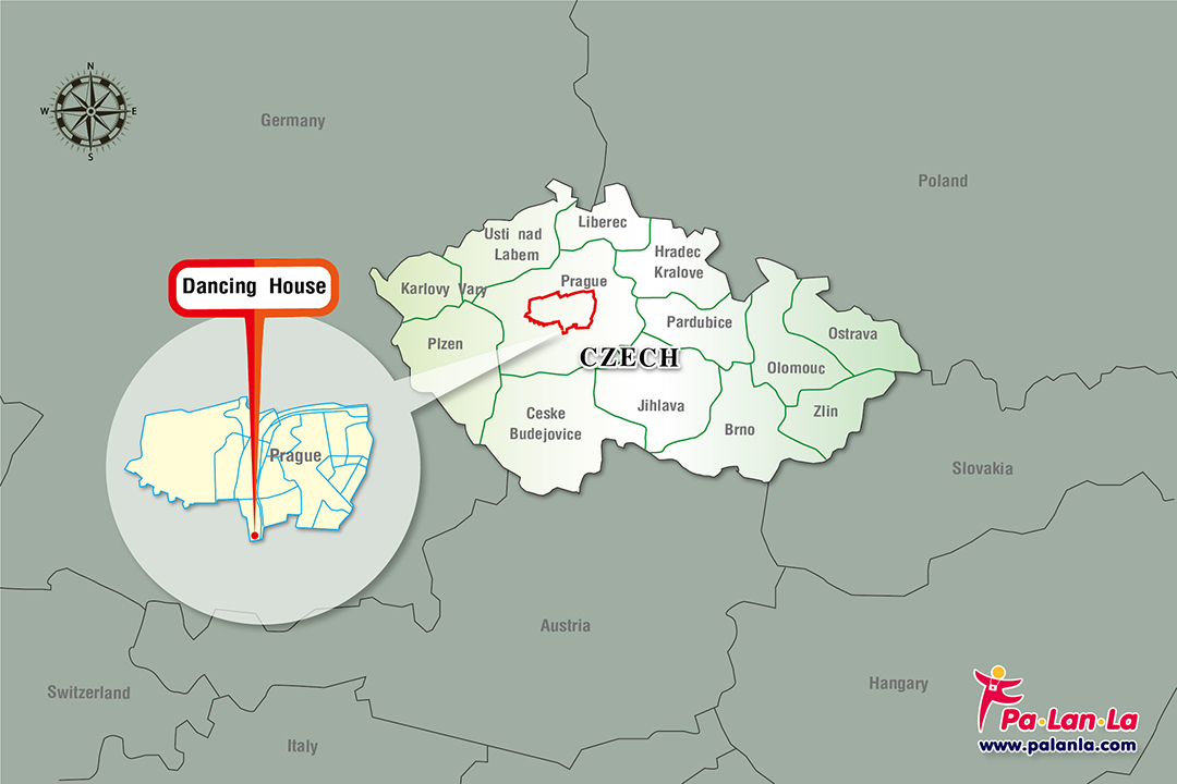 อาคารเต้นรำ (Dancing House) สถาปัตยกรรมสมัยใหม่ที่ตั้งอยู่ท่ามกลางความคลาสสิกของเมืองปรากอย่างโดดเด่น ตัวอาคารมีลักษณะโค้งงอ ที่ได้แรงบันดาลใจในการสร้างมาจากสรีระร่างกายของนักเต้นชายหญิง และยังแฝงไปด้วยนัยยะทางการเมืองของสาธารณรัฐเช็กด้วย อีกทั้งภายในอาคารยังมีร้านอาหารฝรั่งเศสชื่อดัง ที่มีอาหารอร่อยๆ ให้เลือกกินหลากหลาย
