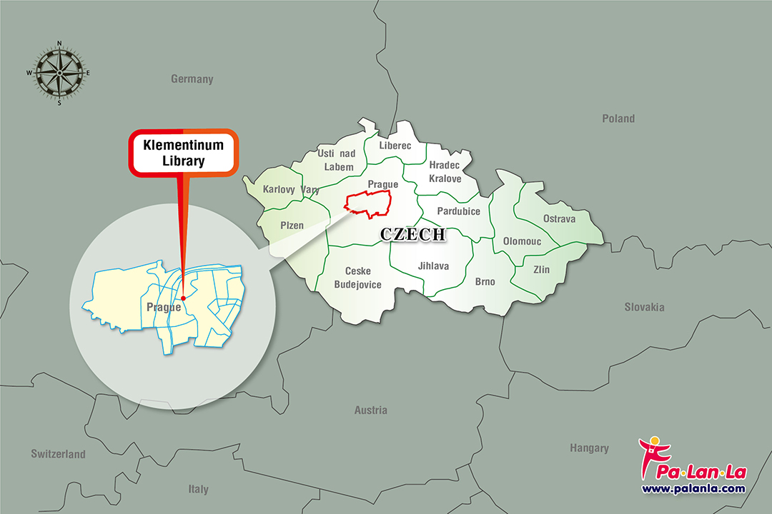 แผนที่ตั้ง ห้องสมุดเคลเมนตินัม เมืองปราก สาธารณรัฐเช็ก