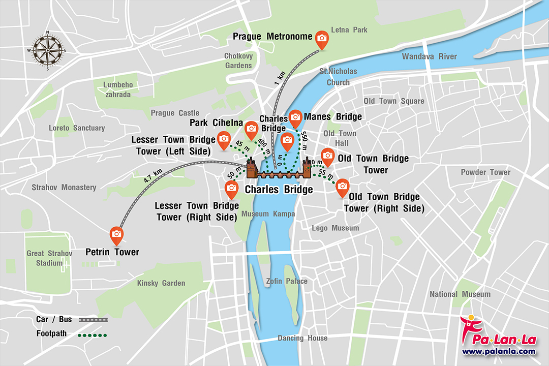 แผนที่ตั้ง 9 มุมสวยถ่ายรูปสะพานชาร์ลส์