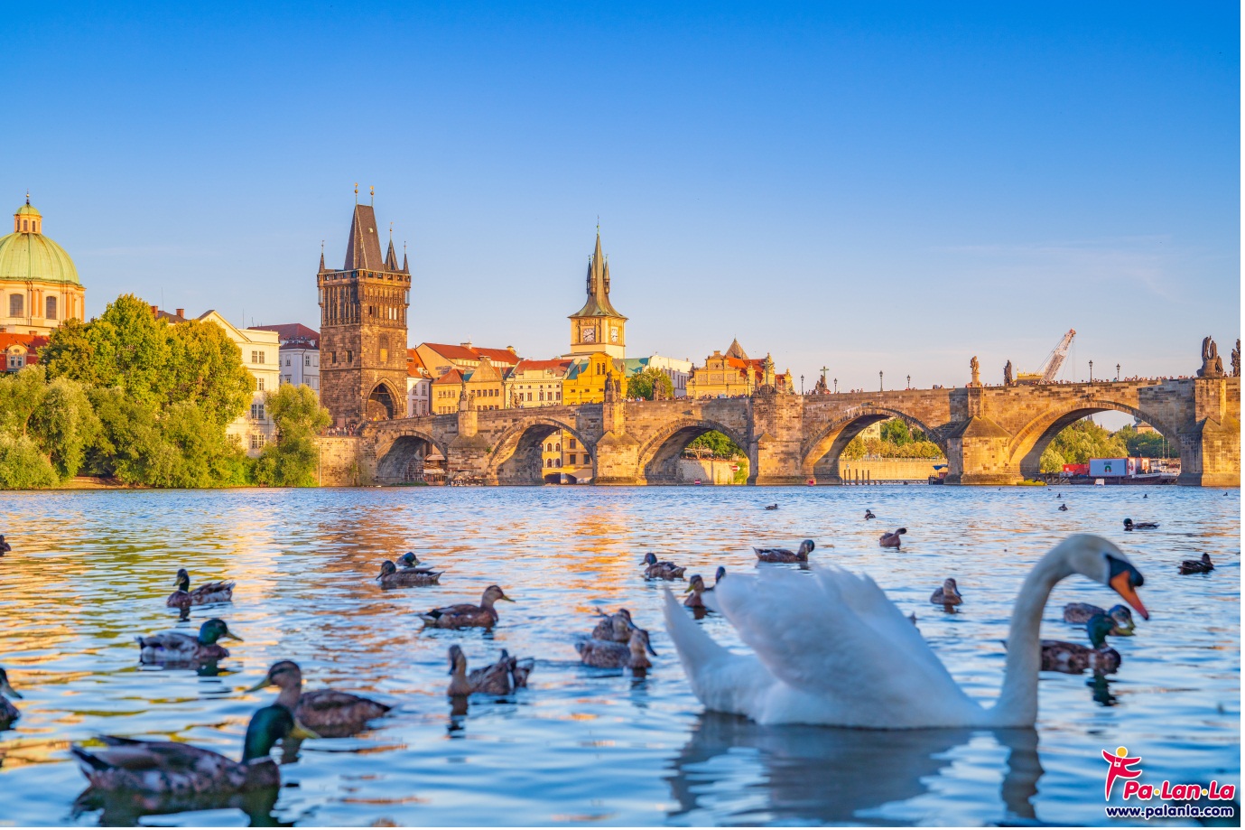 สะพานชาร์ลส์ (Charles Bridge) แลนด์มาร์กหลักประจำย่านเมืองเก่า ที่ถูกใช้เป็นเส้นทางสัญจรข้ามไปมาระหว่างฝั่งตะวันออกกับฝั่งตะวันตกของเมืองมายาวนานหลายร้อยปี จนถูกยกให้เป็นหนึ่งในสิ่งก่อสร้างที่ทรงคุณค่า และมีความงดงามมากที่สุดแห่งหนึ่งของสาธารณรัฐเช็ก ไม่ว่าจะเป็นลักษณะทางสถาปัตยกรรมของตัวสะพาน ประติมากรรมที่ตั้งอยู่บนสะพาน โลเคชั่นของตัวสะพานซึ่งสามารถมองเห็นทัศนียภาพของย่านเมืองเก่าได้แบบครอบคลุม เกิดเป็นมุมถ่ายรูปสวยๆ หลากหลายจุดทั่วสะพานชาร์ลส์ ที่สามารถมาตระเวนถ่ายรูปกันได้ทั้งวัน