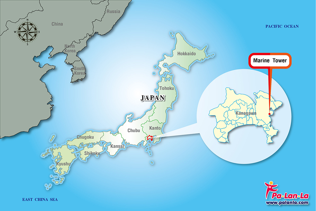 แผนที่ตั้ง ประภาคารมารีน ทาวเวอร์ จังหวัดคานากาว่า ประเทศญี่ปุ่น