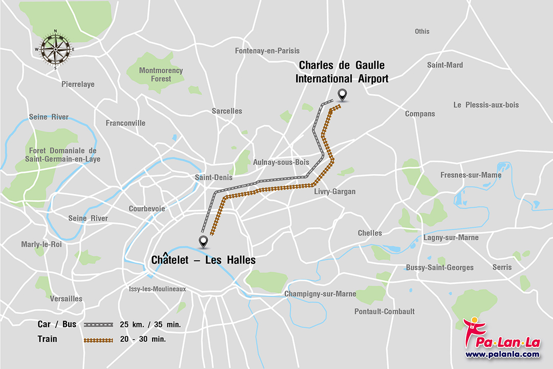 - รถไฟใต้ดิน เป็นบริการขนส่งสาธารณะที่มีชื่อเสียงและได้รับความนิยมในฝรั่งเศสอย่างมาก นักท่องเที่ยวสามารถเดินทางจากสนามบินไปยังเมืองปารีสได้ภายใน 35 นาที และมีค่าบริการเพียง 11.40 ยูโร สถานีปลายทางในตัวเมืองปารีสคือ สถานีรถไฟ Châtelet – Les Halles ซึ่งเป็นสถานีเชื่อมต่อกับรถไฟใต้ดินอีกหลายสายให้เดินทางต่อไปยังที่พักหรือสถานที่ท่องเที่ยวอื่นๆ ได้อย่างสะดวก สามารถตรวจสอบเส้นทาง ตารางเวลา และอัตราค่าโดยสารได้ที่ https://www.parisaeroport.fr/en/passengers/access/paris-charles-de-gaulle/public-transport/rer-b