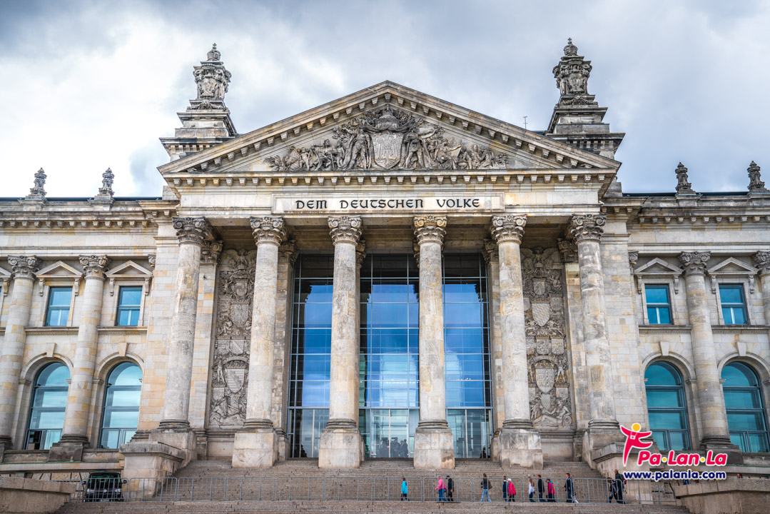 อาคารไรชส์ทาค (Reichstag Building) ที่ตั้งของรัฐสภา หันหน้าไปทางทิศตะวันตก ติดกับจัตุรัสพลัทซ์เดอร์รีพลับบลิค (Platz der Republik)