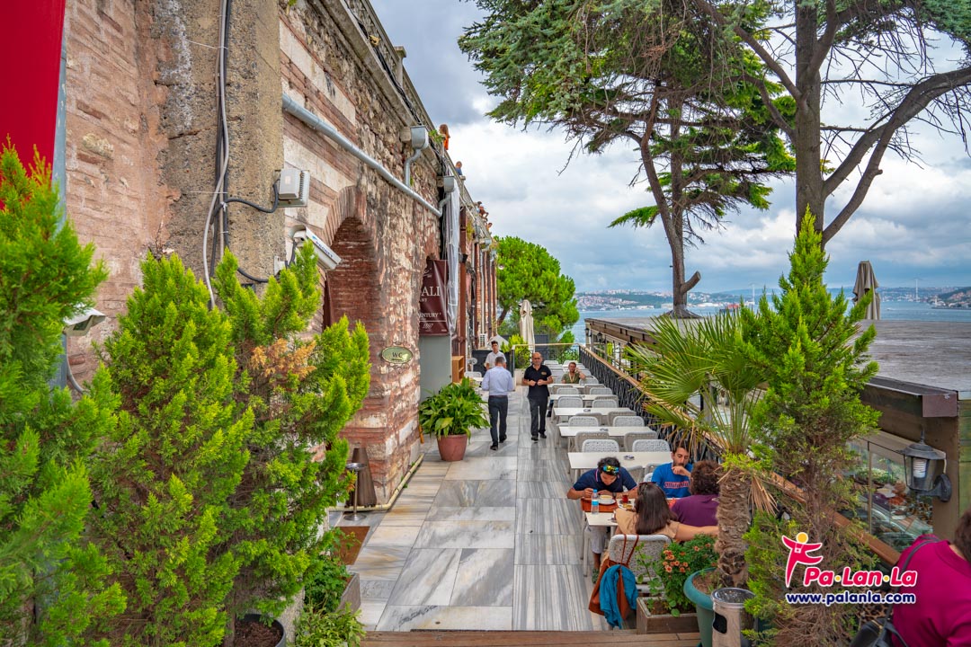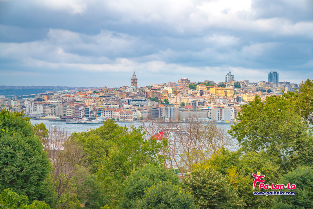 จากที่ตั้งของพระราชวัง Topkapi สามารถมองเห็นช่องแคบบอสฟอรัส (Bosphorus Strait) บรรจบกับทะเลมาร์มะรา (Marmara Sea)