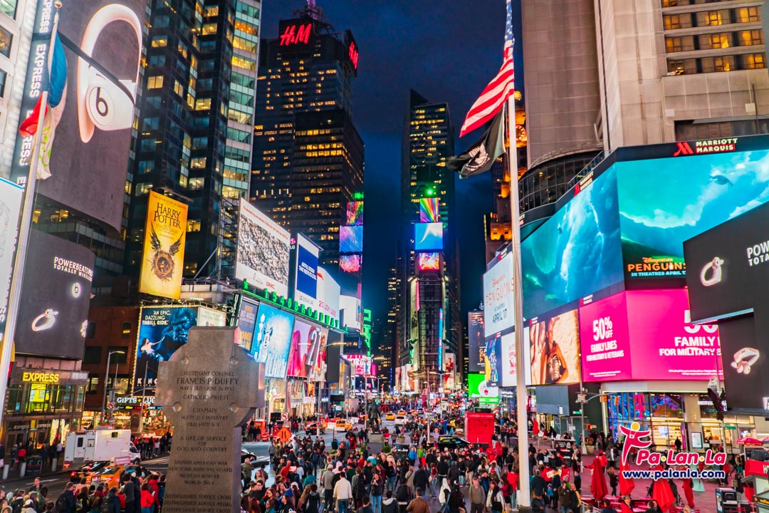 ไทม์สแควร์และถนนบรอดเวย์ (Times Square & Broadway) เป็นย่านที่โด่งดังที่สุดของเมืองนิวยอร์ก ภาพตึกสูงระฟ้าประดับไฟ LED งดงามยามค่ำคืน ป้ายบิลบอร์ดขนาดใหญ่ของร้านค้าแบรนด์ดัง พิพิธภัณฑ์มาดามทุสโซและพิพิธภัณฑ์ริบลี่ส์ รวมถึงสถานบันเทิงบนถนนบรอดเวย์อีกมากมาย และจุดที่นักท่องเที่ยวจะสามารถเก็บภาพความมีชีวิตชีวาที่คลาคล่ำไปด้วยผู้คนของไทม์สแควร์ไว้ได้ดีที่สุดคือบนอัฒจันทร์แดงด้านหลังอนุสาวรีย์ Father Francis P. Duffy บริเวณจุดขายบัตรละครบรอดเวย์ TKTS