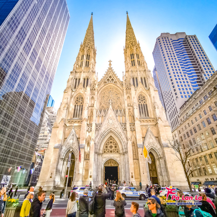 โบสถ์เซนต์แพทริกแคทเธอดอล (St. Patrick's Cathedral) โบสถ์ยอดแหลมสูงสถาปัตยกรรมนีโอ-โกธิคที่อยู่ท่ามกลางตึกสูงระฟ้ากลางเมืองนิวยอร์ก บนบานประตูแกะสลักรูปของนักบุญนิกายโรมันแคทอลิกไว้ ภายในโบสถ์เหนือบานประตูเป็นหน้าต่างกระจกสีลายกุหลาบขนาดใหญ่ นักท่องเที่ยวนิยมถ่ายภาพโบสถ์จากภายนอกเพราะสามารถเก็บภาพความงามและความยิ่งใหญ่ไว้ได้ดีที่สุด